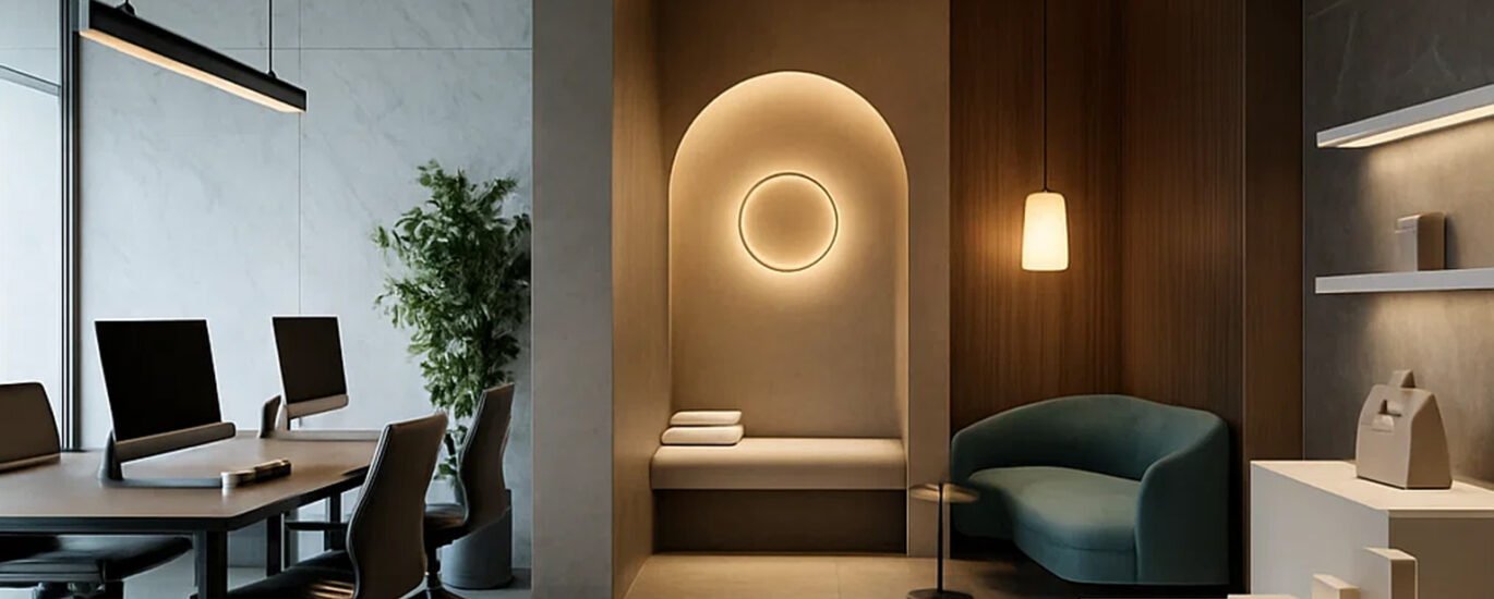 | Beauty & Wellness | Salons, spas, derma clinics | Hygienic surfaces, task-lighting hierarchies, calming tones |