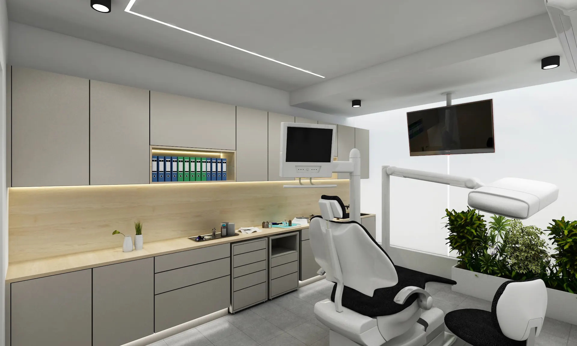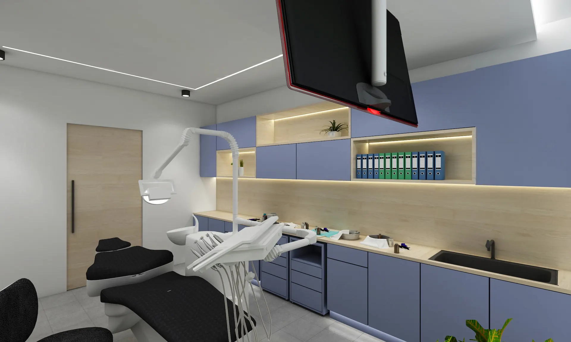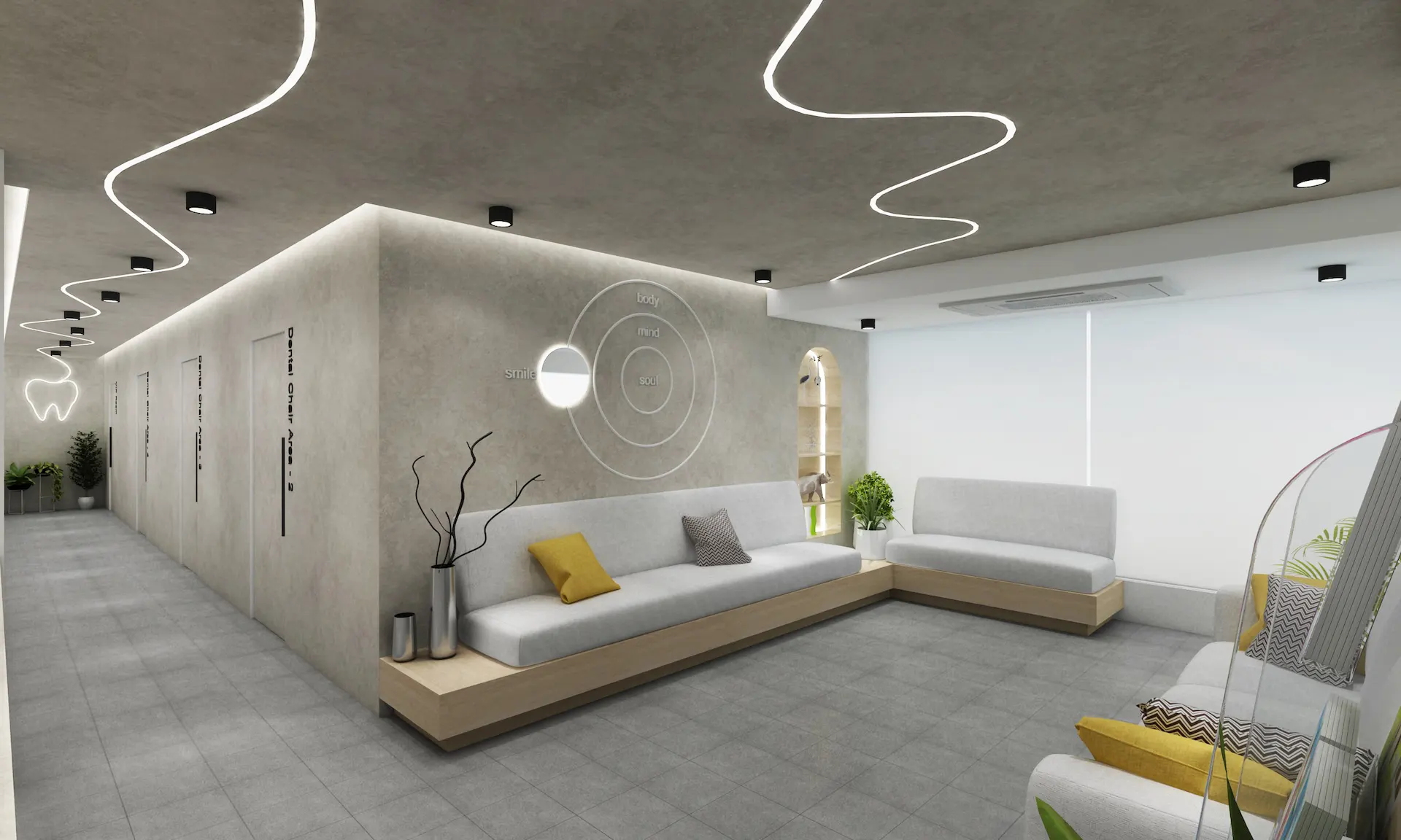 The clinic features thoughtfully designed interiors that reflect contemporary dental practice standards. Clean lines, calming colors, and intelligent layout design create a welcoming environment that reduces patient anxiety. The space is optimized for both clinical precision and patient comfort, with modern equipment and ergonomic workstations supporting the dentist’s work while maintaining the highest standards of hygiene and safety.